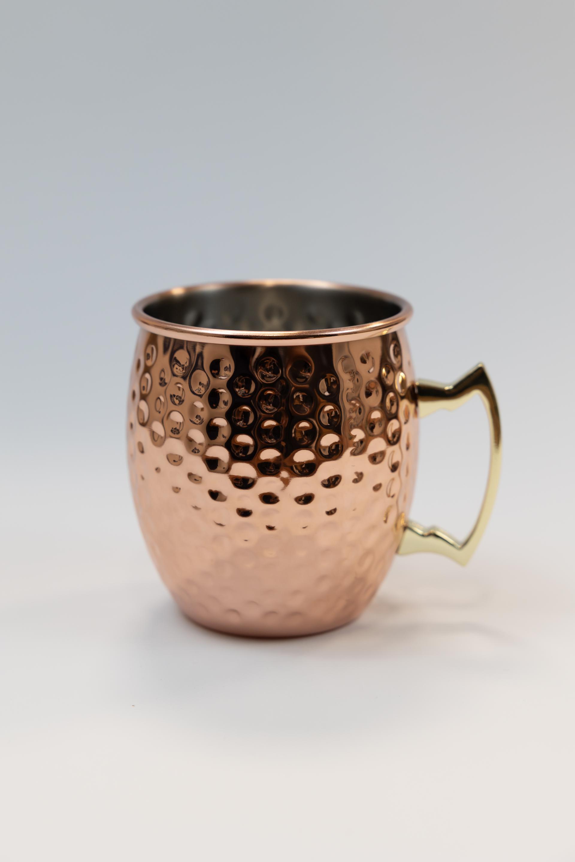 Moscow Mule čaša karakteristična je po svom jedinstvenom dizajnu od bakra, što je čini odmah prepoznatljivom i popularnom među ljubiteljima koktela. Ova čaša ima zaobljen oblik s čvrstim ručkama, omogućavajući jednostavno držanje dok se uživa u osvježavajućem piću koje se poslužuje. Materijal od kojeg je izrađena pomaže u održavanju niske temperature koktela na bazi đumbira, vodke i limete, čime se poboljšava cjelokupno iskustvo uživanja u ovom klasičnom piću.